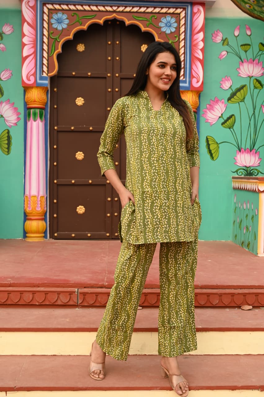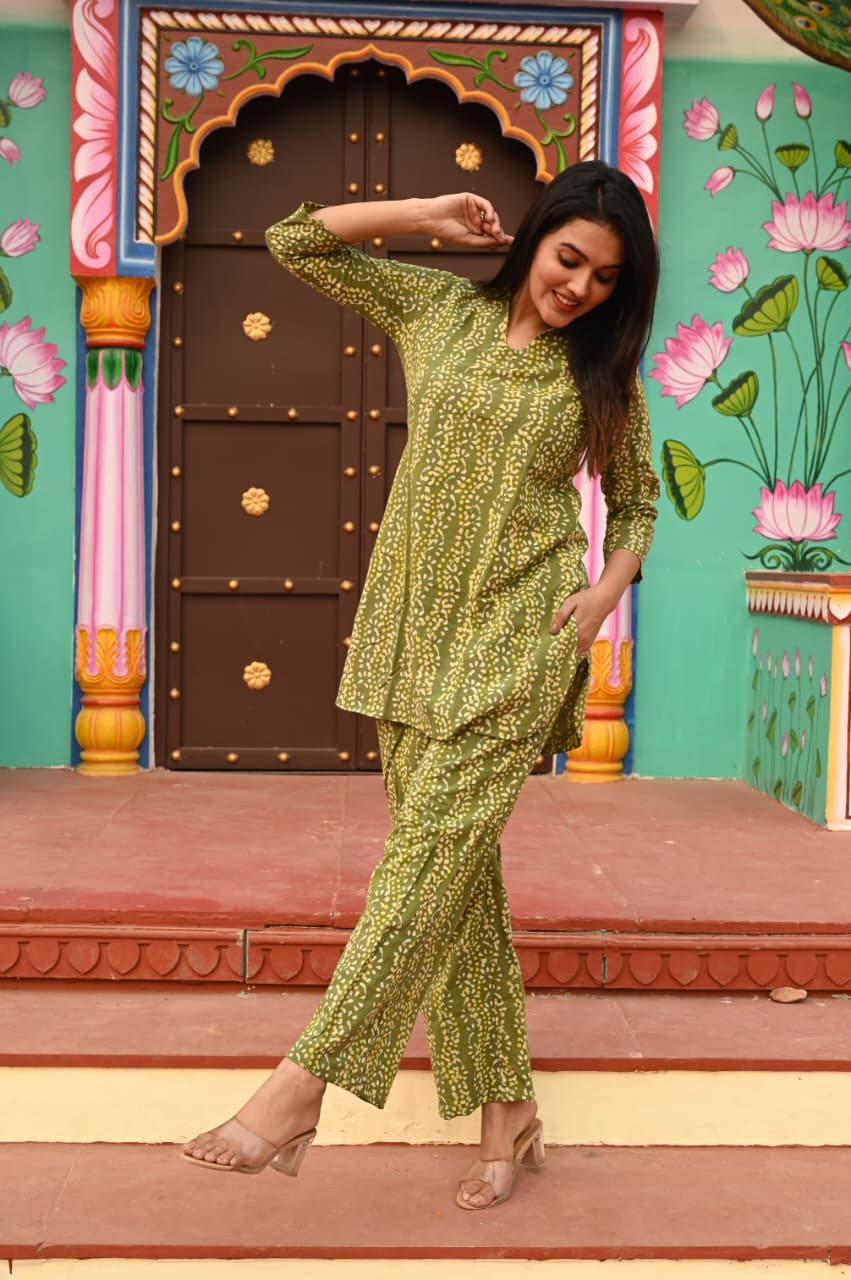 Step into effortless style and comfort with this Green Printed Cotton Co-Ord Set, designed for women who love a perfect blend of tradition and modernity.