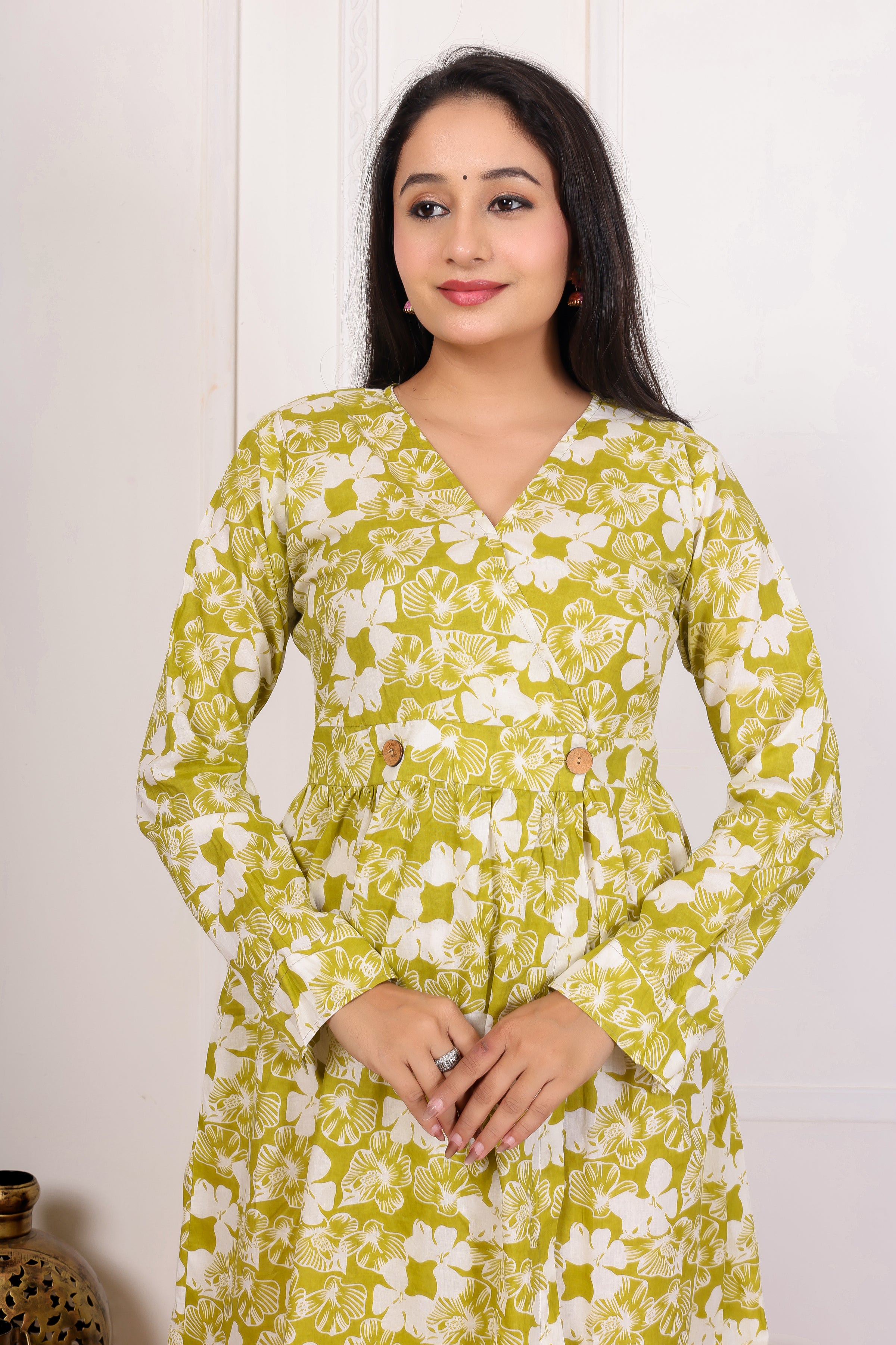 Bring a touch of freshness to your wardrobe with our Lime Green Floral Midi Dress – the perfect blend of elegance and comfort.