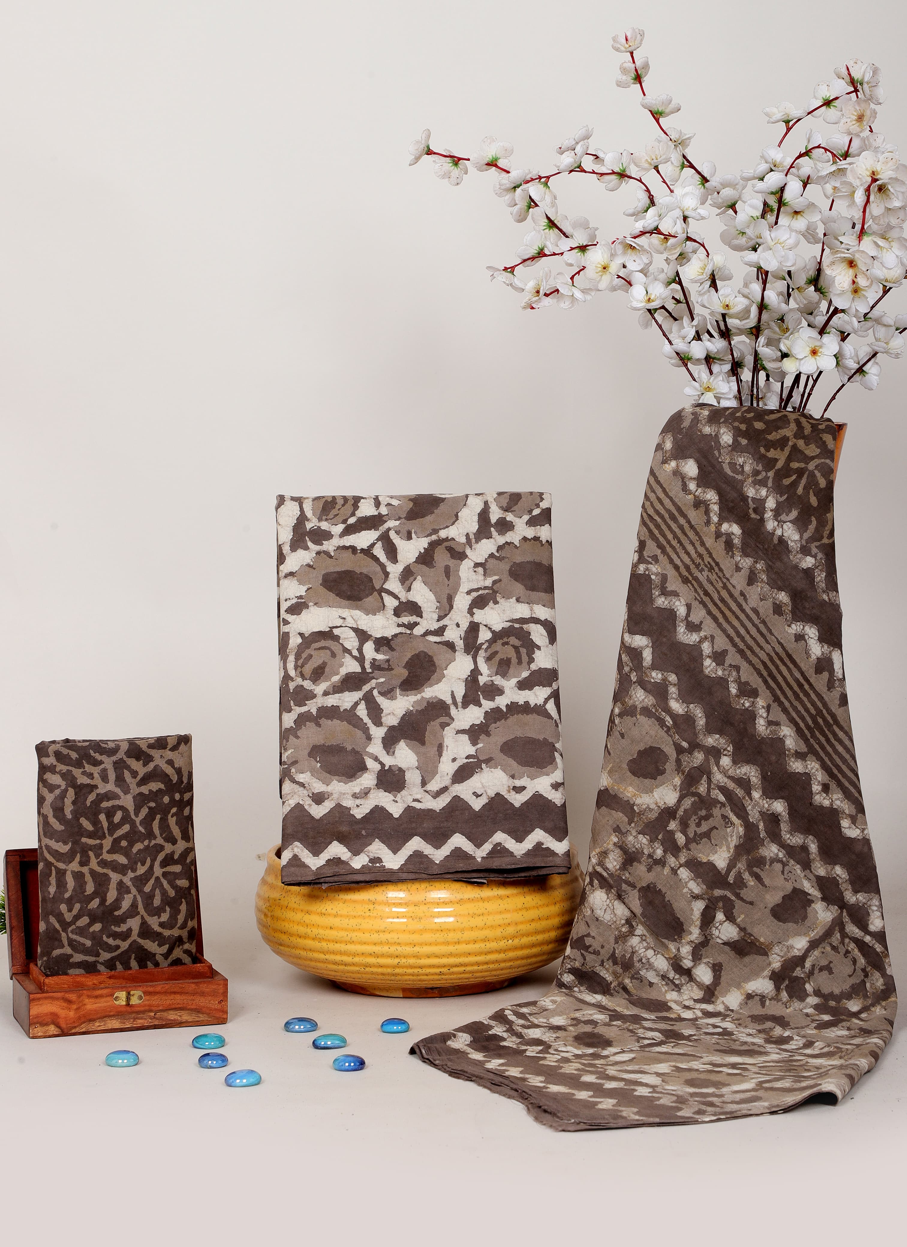 Redefine your ethnic style with this Handmade Dabu Cotton Dress Material in earthy brown and beige tones. Crafted with care using the traditional dabu art technique, this suit set is a perfect blend of heritage and contemporary elegance.