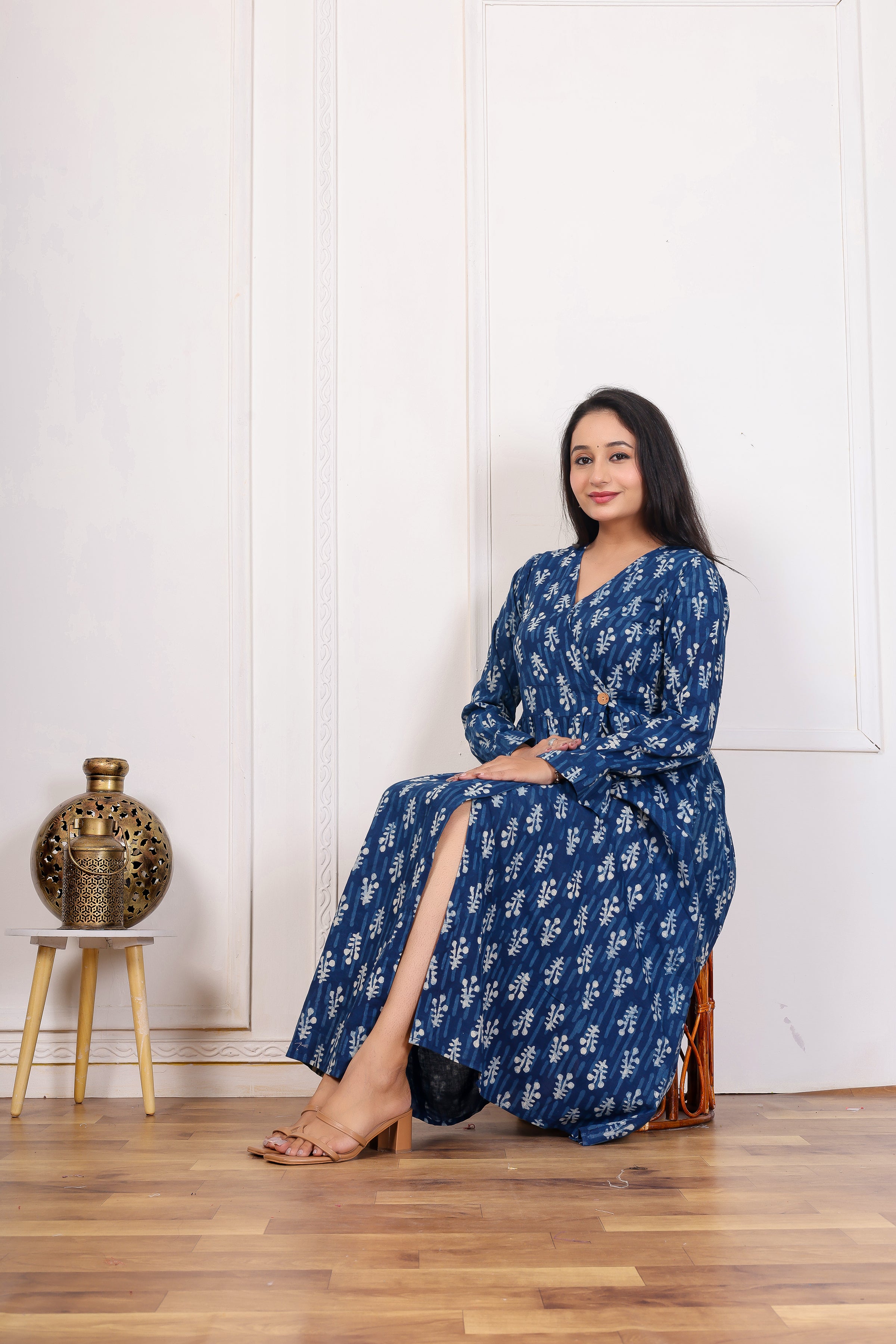 Elevate your everyday style with our Indigo Blue Printed Midi Dress, a perfect fusion of elegance and comfort.
