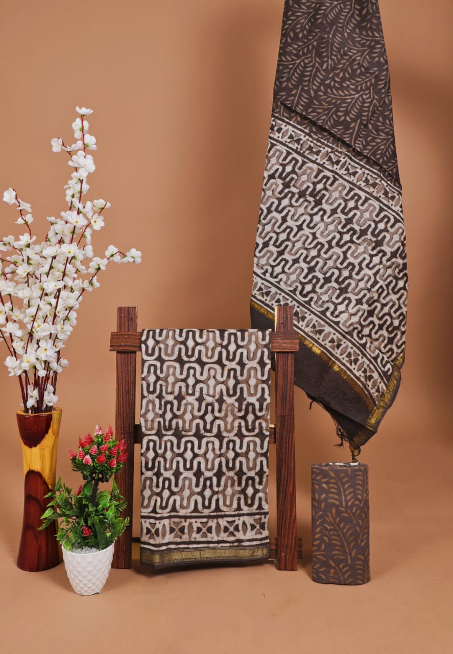 Elevate your ethnic wardrobe with this elegant Marigold Bloom Chanderi Suit Set, a graceful blend of delicate floral artistry and traditional handblock charm. Crafted for women who adore heritage with a modern twist, this set is perfect for festive celebrations, office elegance, or gifting with love.