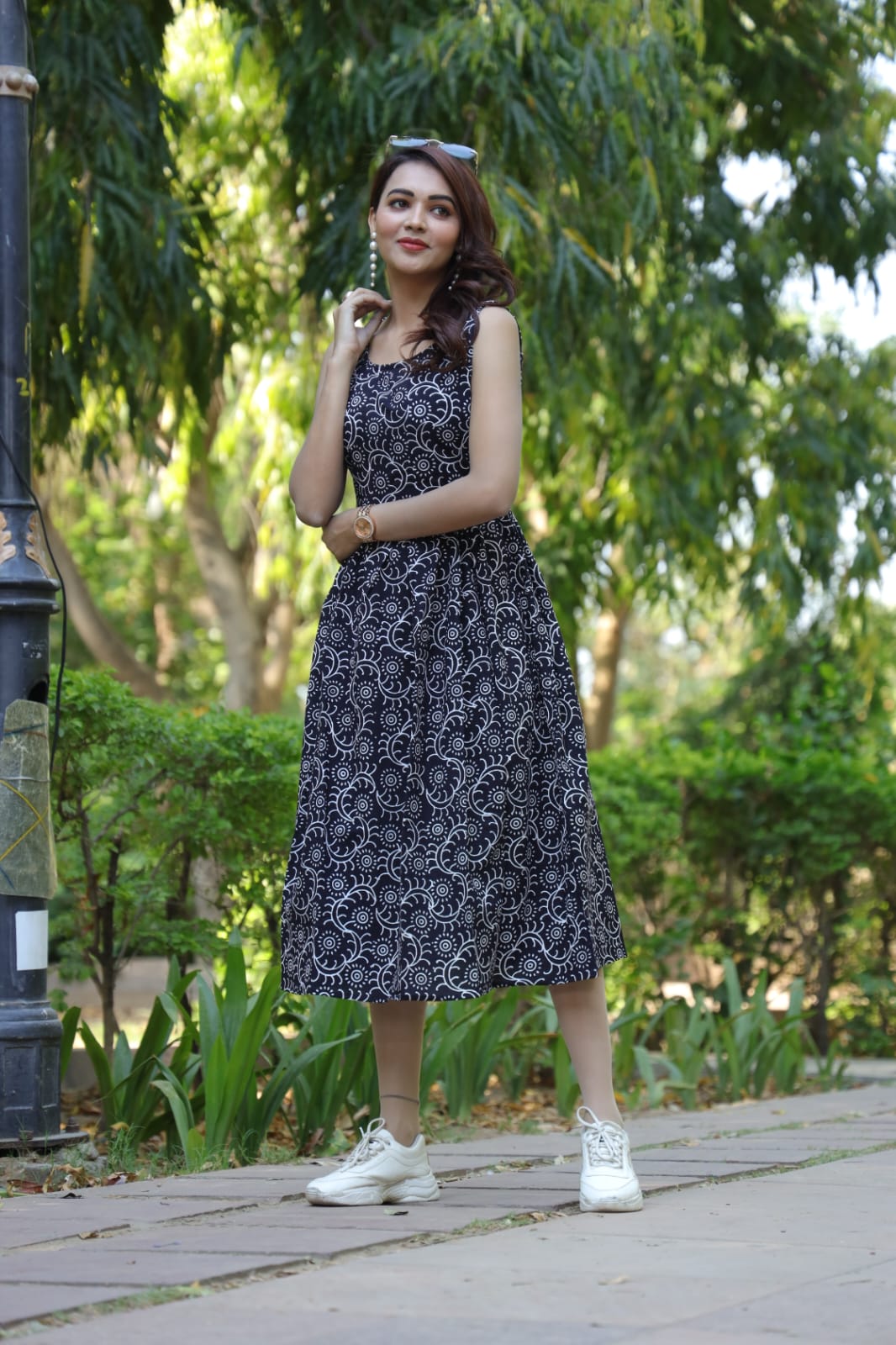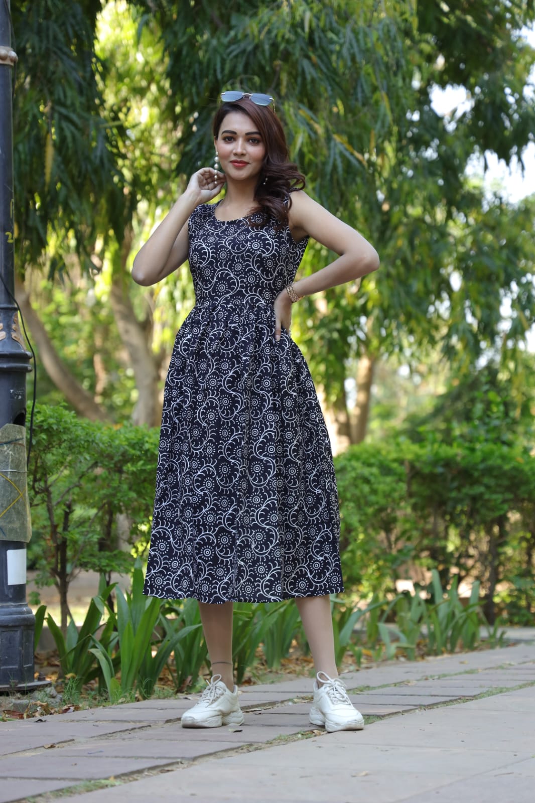 This black and white spiral print dress is perfect for anyone who loves a modern, stylish look with a touch of playfulness. The unique spiral pattern contrasts beautifully against the black background, making it an eye-catching addition to your wardrobe. Designed for comfort and flair, this dress features a flattering A-line silhouette that suits various body types.